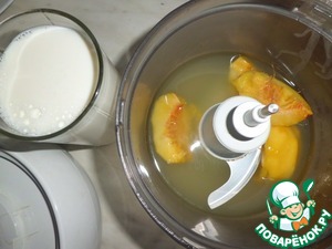 В это время перемалываем в комбайне сыворотку и очищенный от шкурки нектарин.