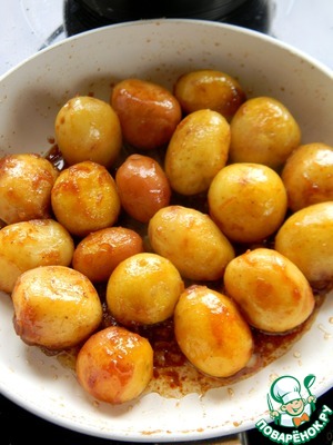 Здесь уже можно аккуратно перемешивать ложкой, соус будет густеть и обволакивать картофель, как карамелью. Когда весь соус впитается, можно снимать с огня.