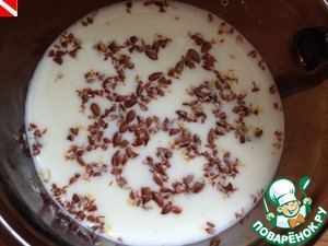 Молоко подогреть, добавить семена льна, дать настояться 5-7 минут