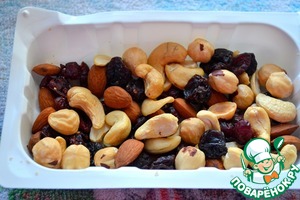 - Орехи (ореховая смесь: кешью, фундук, миндаль) — 1/2 стак.