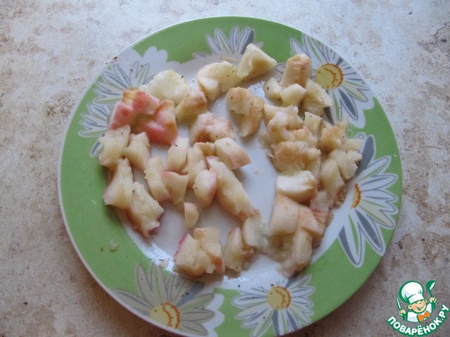 Охлажденные яблоки очистить от кожуры, крупно нарезать.
