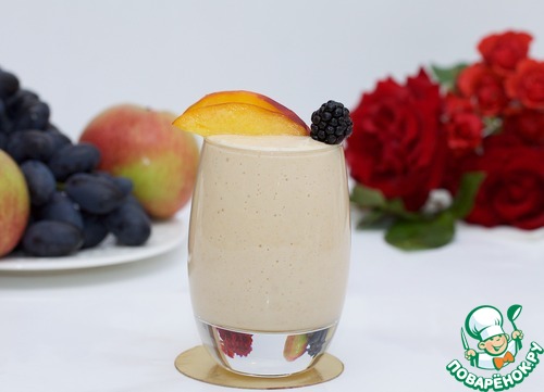 Густой, сливочный, с легкой кислинкой яблок и ароматом персика, сытный коктейль с овсянкой! Угощайтесь!