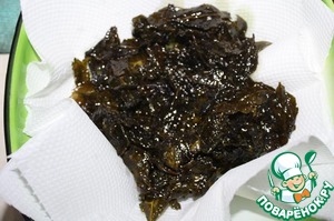 Выложить жареный чайный лист на бумажное полотенце