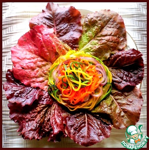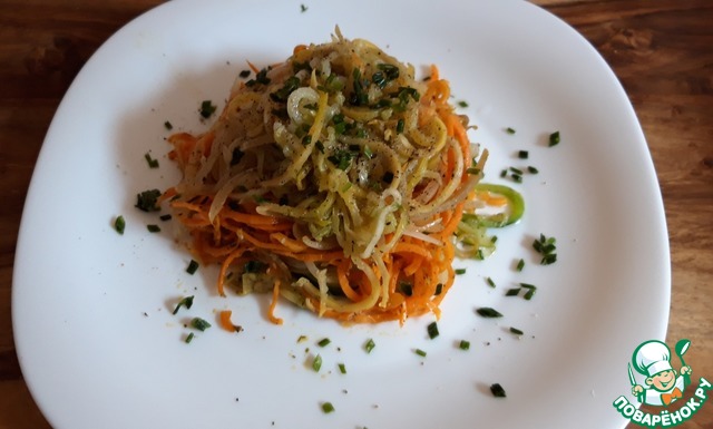 Последнее время все чаще встречаю в интернете рецепты "спагетти" (или лапши) из цуккини! ))) Спасибов приготовления таких "спагетти" не мало. Конечно, для этого нужно использовать специальную тёрку-овощерезку... Но, если Вам удастся приобрести подобное приспособление, очень советую попробовать вот такую оригинальную овощную закуску из овощей, которая может послужить и отличным гарниром к мясным блюдам! Благодарю за рецепт кулинара Tanusha!