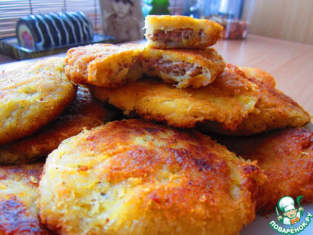 Все мы знаем вкусные оладушки из тертой картошки. Но такого рецепта я еще не встречала. А это драники с начинкой из фарша, картошка в которых остается белой и не темнеет. И поэтому блюдо получается красивым, ну а главное, потрясающе вкусным.
