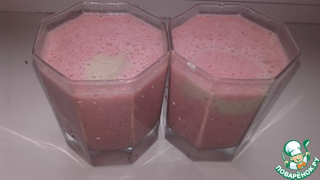 Рецепт «Бананово-клубничный смузи с овсяными хлопьями»: