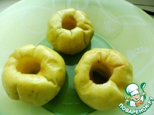Запечь очищенные от середки яблоки в микроволновке 7 минут до мягкости.