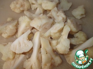 Цветную капусту порезать произвольно. Я каждое соцветие делила на 4 части.