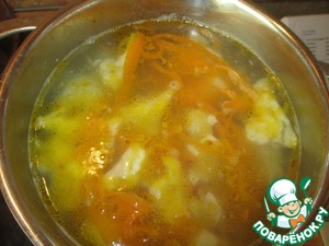 Цветную капусту выложить в кипящий бульон и отваривать почти до полной готовности.