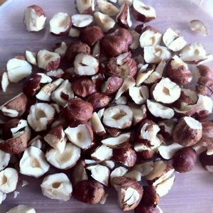 Для начала картофель хорошенько вымыть и поставить варить в кожуре. Если он не мелкий, разрезать каждую картофелину на две части. Орехи крупно нарубить.