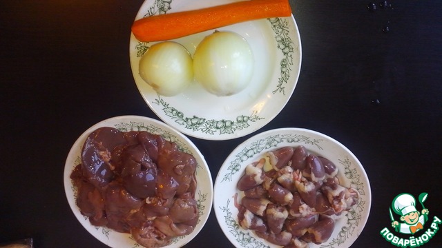 Готовим продукты. Промываем суб продукты. Сердечки от жира не очищаем, этот жирок нам заменит масло.