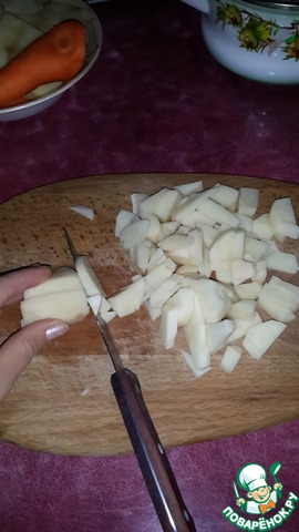 Нарезаем картофель и бросаем в кастрюлю с кипящей водой предварительно подсоленной