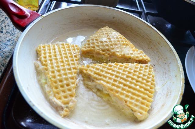 В миске взбиваем 2 яйца обмакиваем наши кусочки!