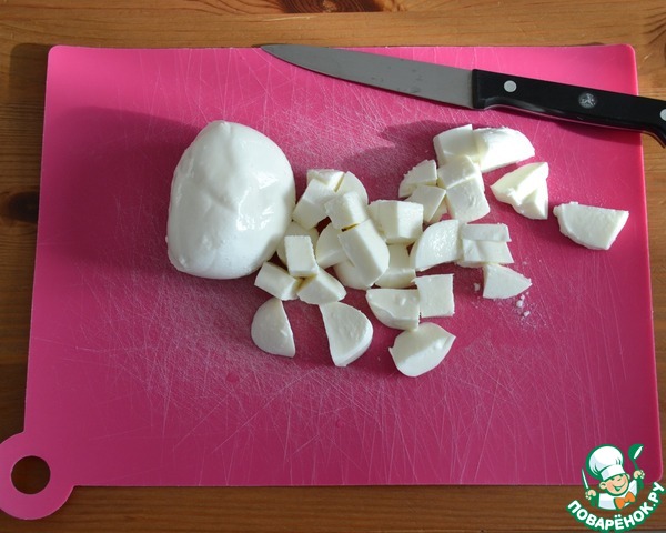 • Тем временем, сыр моцарелла нарезать кубиками...