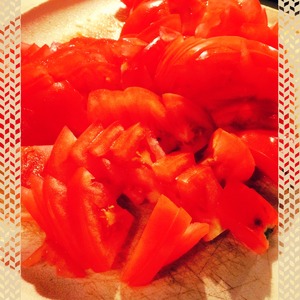 • Пока там все у нас нажаривается, нашинкуем томаты.