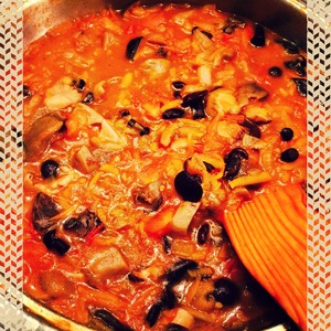если на огороде Вы также выращиваете некоторые травы, то за 5 мин до окончания приготовления смело бросайте несколько горсточек. Если любито по-острее, то перчика не жалейте