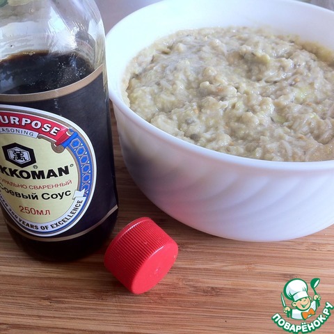 Далее в измельченные овощи добавить тертый сыр, яйцо, соевый соус от Kikkoman, муку. Тут я хочу остановиться подробнее. Муку не нужно сыпать всю сразу. Если Вы не используете соевый соус, муки, естественно, нужно меньше, так как меньше жидкости. Кроме того, чем больше муки, тем проще слепить крокеты, но тогда они должны быть не больше грецкого ореха, чтобы не получилась клёклая серединка.