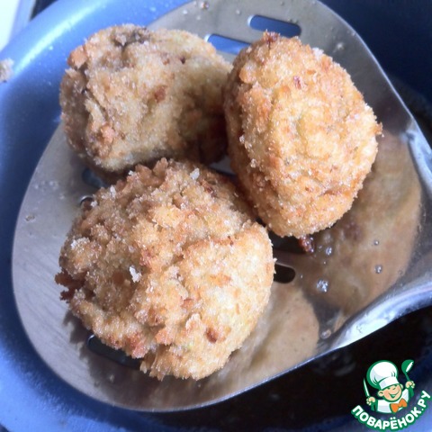 Крокеты обвалять в панировочных сухарях и обжарить во фритюре.