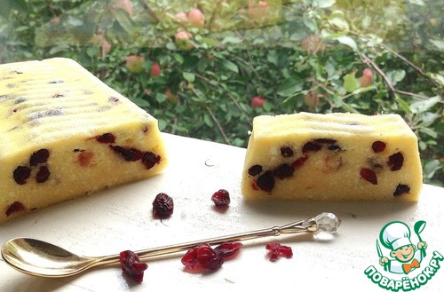 Рецепт «Творожно-ванильная запеканка с клюквой в СВЧ»:
