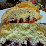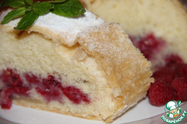Делала пол порции с черникой, пол порции с малиной. Во первых, я не правильно завернула края, во вторых не равными частями разделила бисквит, в результате чего в рулете с черникой получилось очень много бисквита, и он разорвался в тот момент, когда я соединяла края слоенного теста. Думаю на вкусе это не отразилось, но внешность получилась так себе. Вообщем, мне еще надо работать над ошибками)))