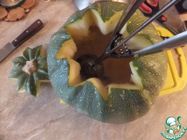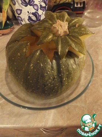 Недавно принесли мне странный объект. Сказали, что кабачок. Очень была удивлена формой и размером, прям тыква, а не кабачок! Сразу возникла идея сделать из него замечательный съедобный горшок! Вот что у меня вышло!