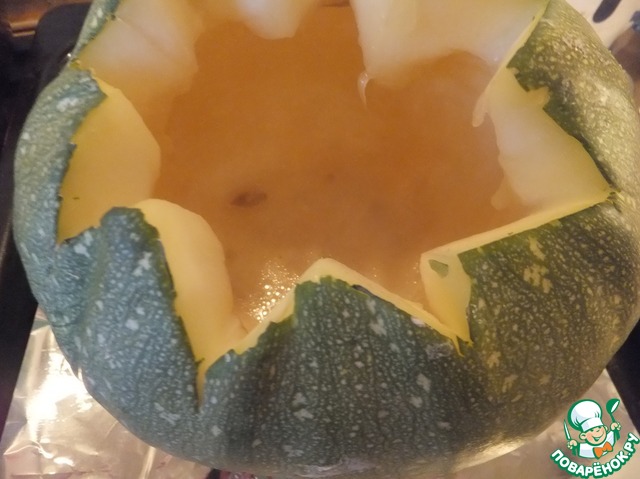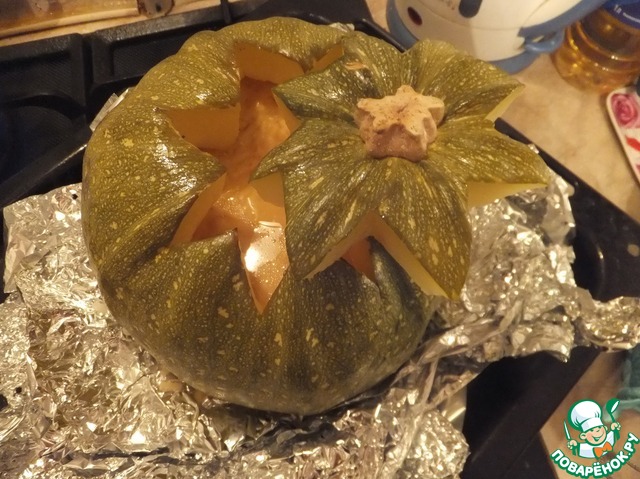 • Закрываю крышечку, и ставлю в разогретую, до 180 духовку, пока готовлю начинку. (у меня ушло минут 30).