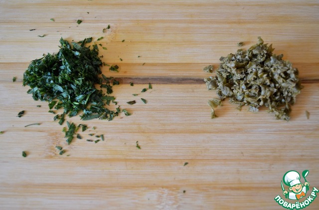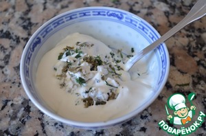 • 2. Смешать сметану, тархун, каперсы, добавить соль и Табаско по вкусу.