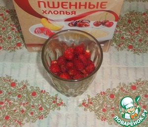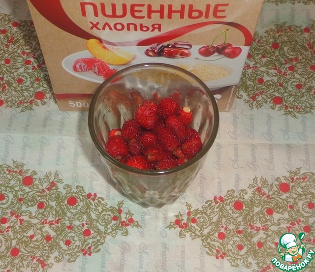 Смузи, приготовленный из свежей ароматной земляники и нектарина, с добавлением пшенных хлопьев.