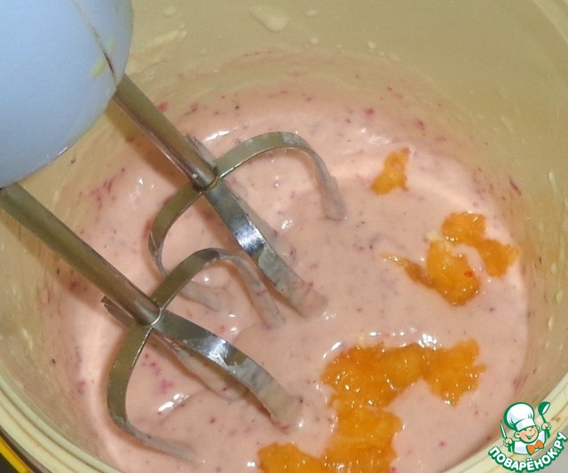 Кефир смешать со сметаной и взбить около 1 минуты.