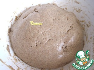 Для теста: в тёплой воде размешиваем мёд и сухие дрожжи. Посуду с дрожжевой смесью накрываем и оставляем в тепле до появления пенной шапочки (на 15-20-ть минут). В отдельной посуде смешиваем ржаную муку, солод, соль и кориандр.