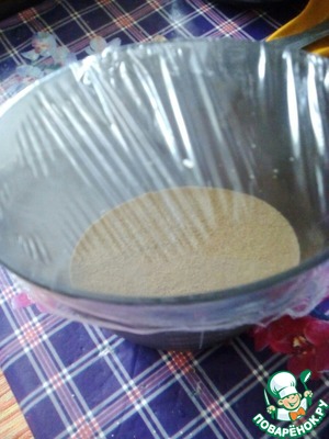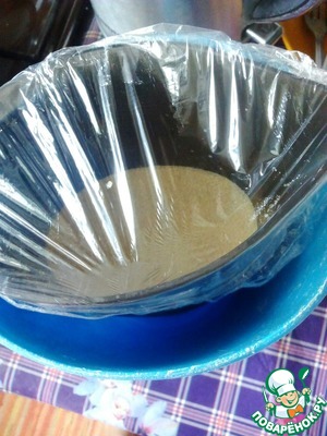 Накрыла емкость пищевой пленкой.