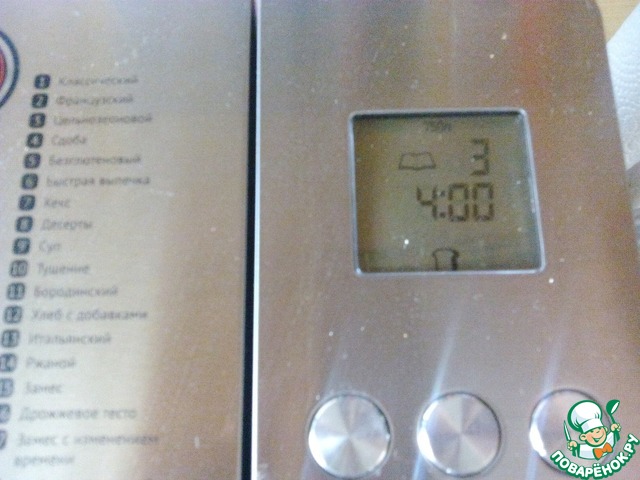 Я выбрала режим Цельнозерновой хлеб (4 часа) 750 г