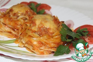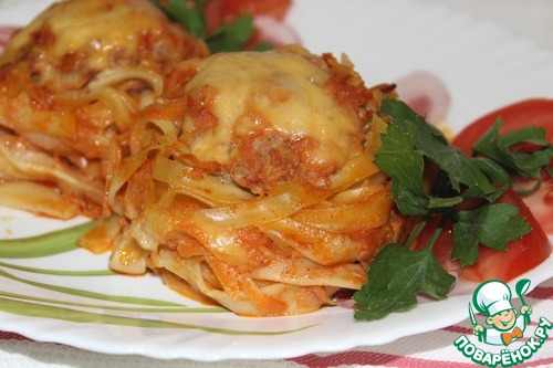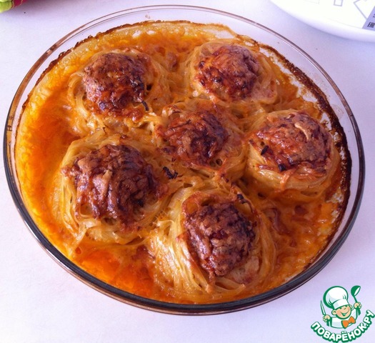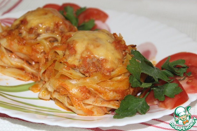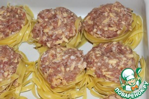 Рецепт «"Гнёзда" из макарон с мясным фаршем»: