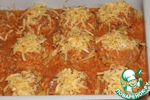 Гнёзда залить сверху соусом. И посыпать оставшимся сыром.