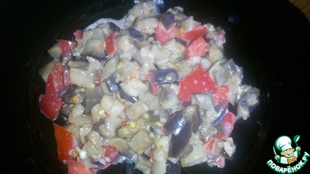 Баклажаны порезать кубиком и высыпать на сковороду с разогретым маслом, добавить сахар, перемешать и обжаривать минут 10 на среднем огне. Снять с огня и пересыпать в салатник, пусть остывает.