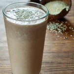 и пробиваем массу блендером для того, чтобы хлопья стали однородной шелковистой массой. Кокос при этом остается целым и играет доминирующую роль во вкусе. -