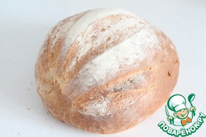 Для этого рецепта можно взять порционные булочки, но я взяла большой хлеб круглый, только что из печи.