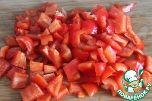 Перец также нарезаем кубиками.