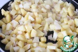 На другой сковороде обжариваем почти до готовности картофель и лук.