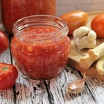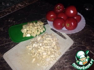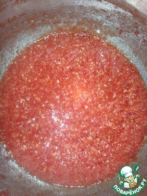 Далее режем на небольшие кусочки помидоры и тоже пропускаем через мясорубку, а затем чеснок, добавляем хрен, который выдавили в пакет, солим и перемешиваем