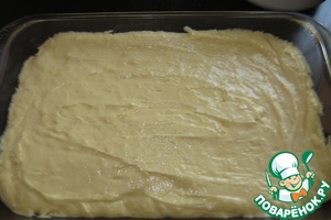 Полученное нежное пышное тесто выложить в форму, разровнять ложкой