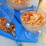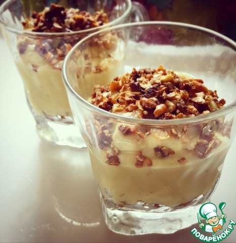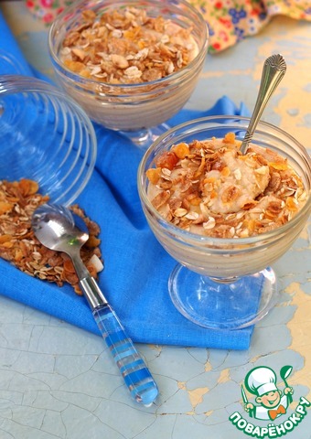 На дно креманок выкладываем небольшое количество хлопьев с орехами.