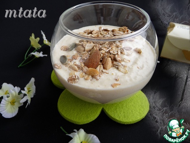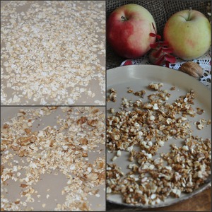 В сковороде поджариваем хлопья с орехами (измельченными), затем добавляем 1 ст. л. сахара, тем самым карамелизируем хлопья и орехи. Весь процесс занимает не больше 2-х минут. -