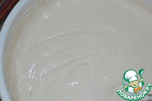 В другой миске смешать яйцо, добавить соль, муку и подготовленные дрожжи. Доливаем 100 мл воды и размешиваем тесто до однородности. Доводим тесто до консистенции густой сметаны, доливая постепенно оставшуюся воду (в общей сложности 160 мл)