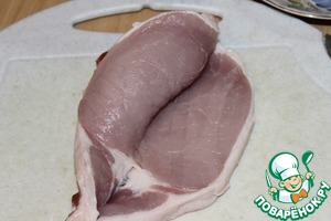 Филе свинины нарезать на 4 толстых порционных куска. Каждый кусок разрезать и раскрыть как книжку.