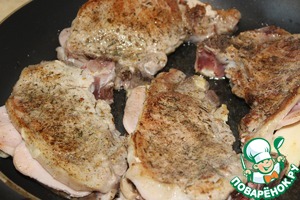 Накрыть начинку второй половиной мяса, посолить, поперчить и сдобрить любимыми специями, уложить подготовленные изделия на сковороду с разогретым растительным маслом. Обжарить с двух сторон до румяной корочки.