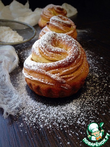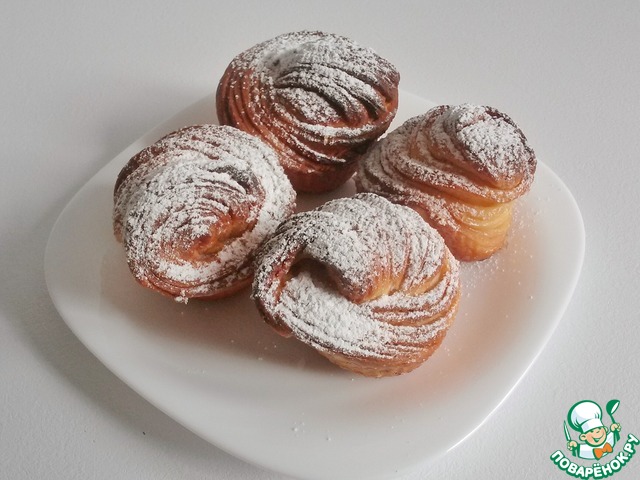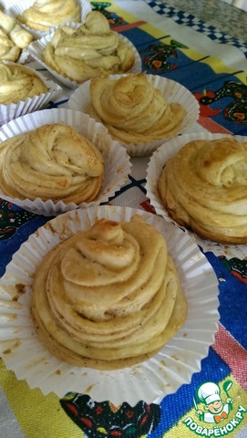 Раскатывать свернутый рулет я думаю не стоит, т к слои слипнуться. У меня получилась плоская улитка. Как булки плюшки .