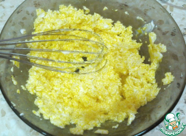 Перемешиваем аккуратно. И добавляем белки (сначала забыла указать, на фото разглядела, что они здесь :) виднеются)