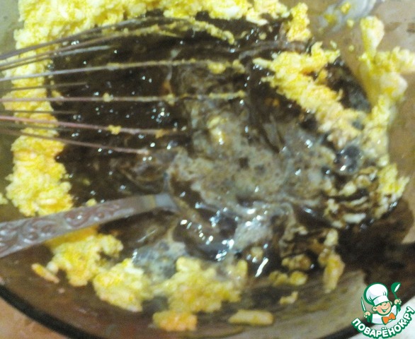 Вылить в масляную смесь, добавить ликёр. Как известно, алкогольные свойства в выпечке испаряются (тем более при высокой температуре и длительном времени), так что Бэйлис добавляем только для усиления аромата
