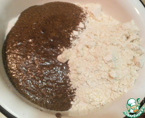 Тесто вышло слишком плотным, прям сухим. Еще у нас не оказалось растворимого кофе, поэтому его заменила какао порошком. То ли молока мало, то ли я белки перебила. А может из-за овсянки - 300 мл моей при измельчении дали целую гору овсяной муки. В общем, мне надо было по 200 гр класть муки, как Вы вначале )
